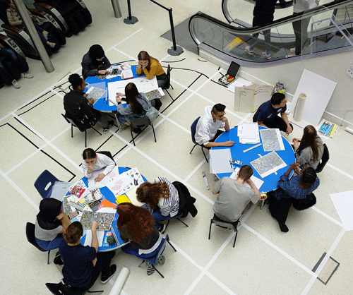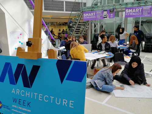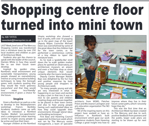 Working closely with our clients at the Mercury Mall for their very own Architecture Week, we set up an interactive 2-day workshop for local 11 – 19 year olds interested in finding out more about Architecture and Masterplanning. The workshop included interactive games, quizzes and the challenge of producing and presenting a masterplan for the carpark site next to the mall.